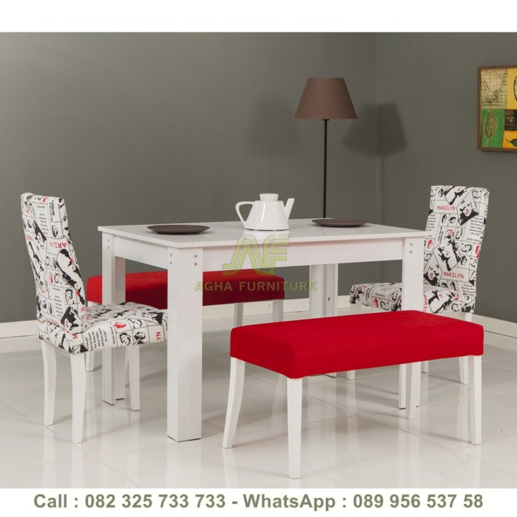 Banyak sekali permintaan akan meja makan minimalis yang dikombinasikan dengan kursi makan sofa. Disamping indah dipandang, meja makan dan kursi makan sofa ini juga memberikan kenyamanan bagi orang yang menggunakannya. Kain sofa untuk set meja makan minimalis bervariasi, kain canvas, beludru, Oscar dan masih banyak lagi yang lainnya dengan motif yang beraneka ragam.