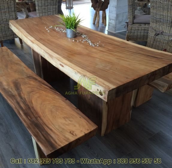 Meja bangku kayu trembesi merupakan salah satu variasi produk kayu trembesi yang dijual satu set yaitu meja trembesi dan bangku trembesi. Atau bisa juga dijual terpisah, meja saja atau bangkunya saja. Meja trembesi memiliki ukuran yang bermacam-macam. Sedangkan bangku trembesi ialah sebuah kursi yang terbuat dari kayu trembesi dengan bentuk memanjang yang biasanya mengikuti panjang meja. Beberapa contoh gambar produk meja bangku trembesi sudah kami post di website kami ini.